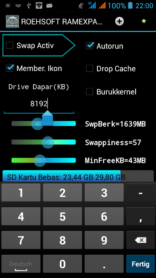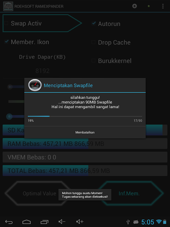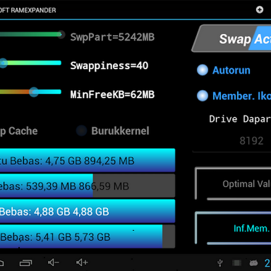 Aplikasi Android Terbaik : ROEHSOFT RAM Expander (SWAP) - Aplikasi ini merupakan aplikasi virtual memori manager untuk Android. Gunakan hingga 4GB SD-Card Memory sebagai tambahan RAM. Kamu dapat menggunakan file atau partisi untuk RAM. Harap memeriksa Kernel Agan sebelum Agan memasang aplikasi ini ! Gunakan "MemoryInfo & SWAPFILECHECK" untuk Tes Kernel !
